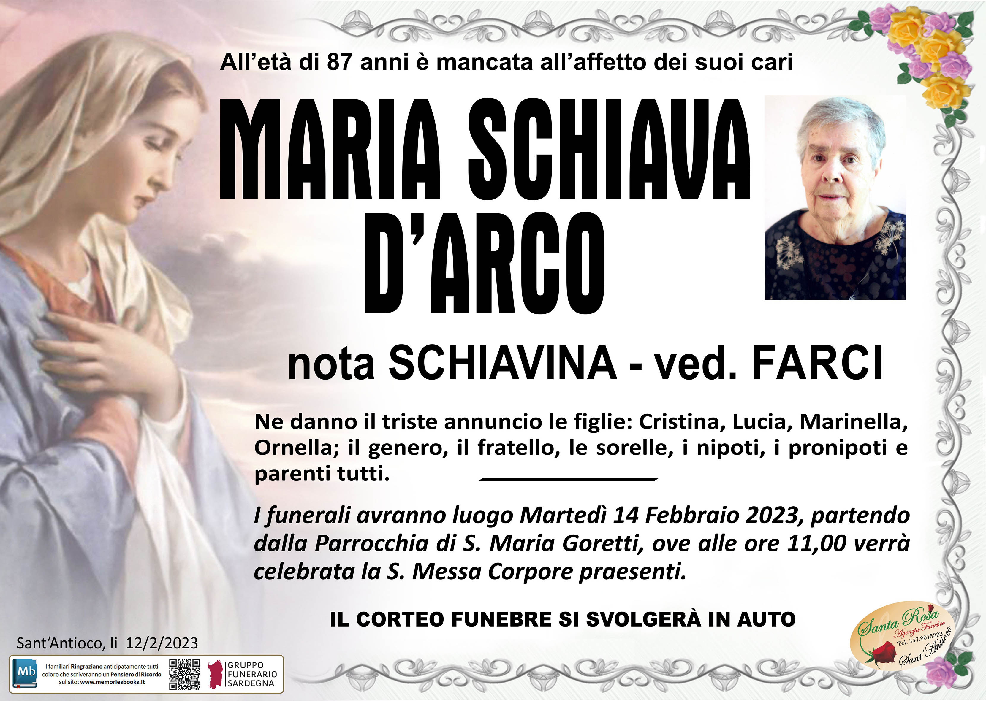 I familiari ringraziano anticipatamente tutti coloro che parteciperanno alla cerimonia funebre e tutti coloro che scriveranno con affetto un Pensiero di Ricordo.